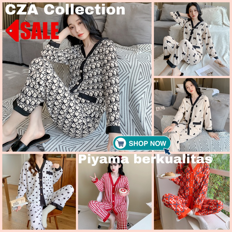 CZA Y460 PIYAMA WANITA DEWASA MODEL KANCING DEPAN MEWAH LENGAN PENDEK CELANA PANJANG HIGH QUALITY SLEEPWEAR PIYAMA KOREA LENGAN PANJANG CELANA PANJANG BAJU TIDUR WANITA DEWASA YX CLAUDIA POWYSUIT