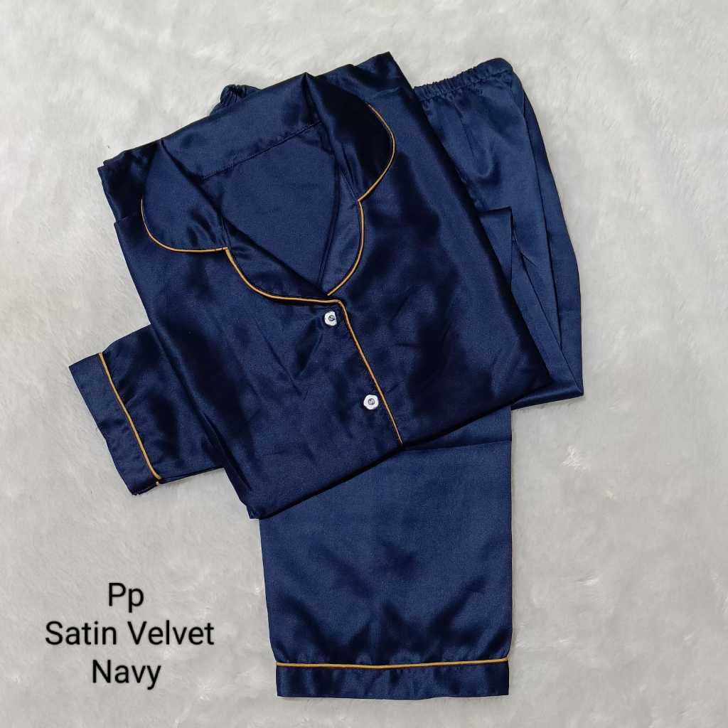 BJ-PIYAMA PP SATIN VELVET - SATIN POLOS WANITA DEWASA MURAH - LENGAN PANJANG