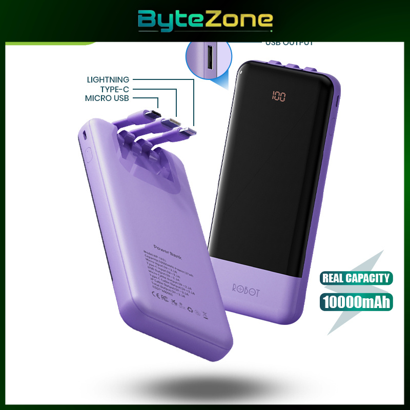 [Mall] ROBOT Powerbank 10000mAh RP-101L/RP-201L, 2.1A Fast Charging + 3 Kabel Type-C, Garansi 1 T✨
