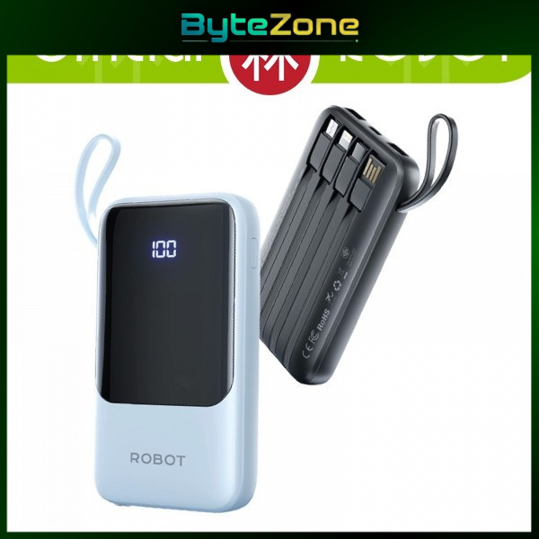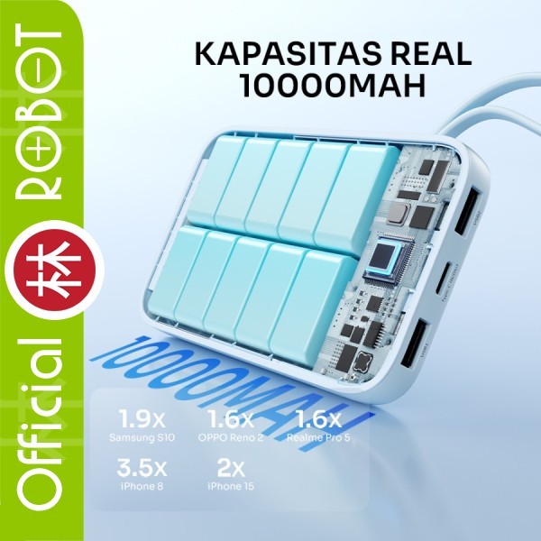 [Mall] ROBOT RT18 Powerbank 10000mAh, Fast Charging PD 15W, 4 Kabel Built-in Micro, Type-C & Lightning✨