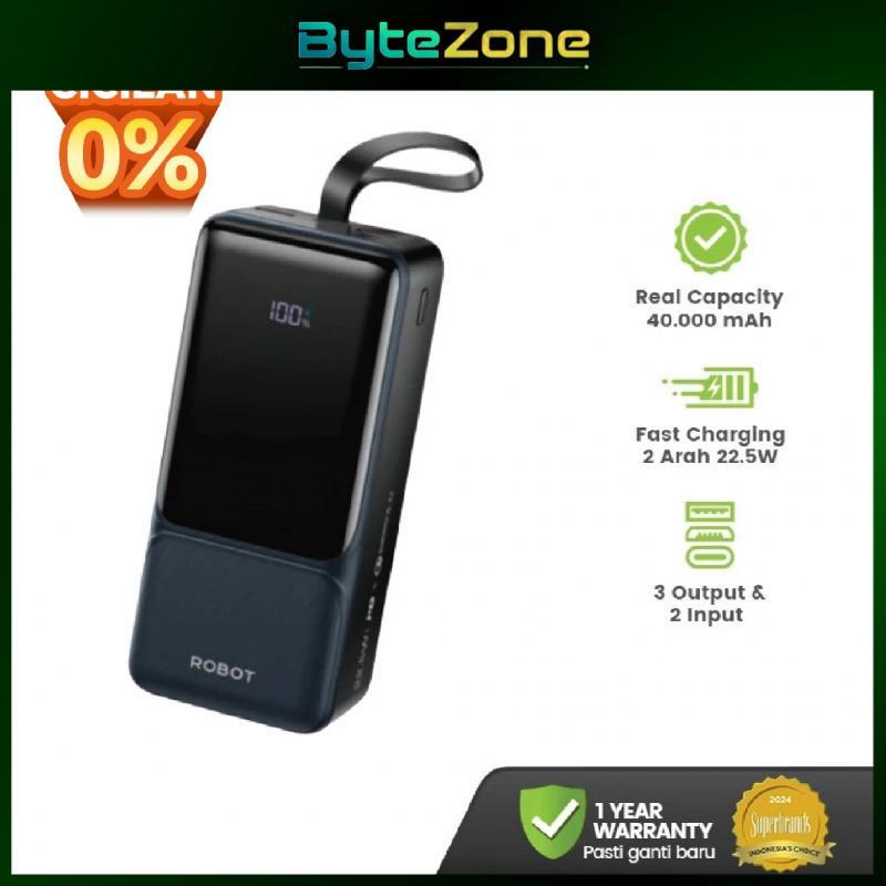 [Mall] ROBOT RT40 Powerbank 40000mAh, Fast Charging 22.5W, 3 Port USB & Type-C, Kapasitas Nyata + Garansi 1 T✨