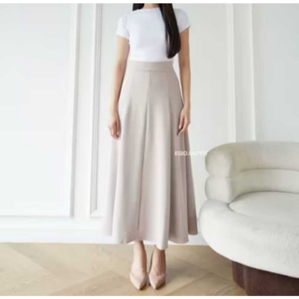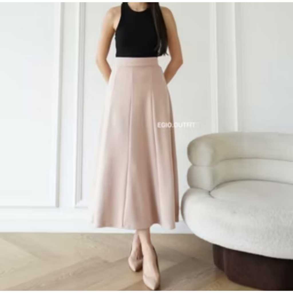 Rok Panjang Wanita High Waist Aline Korea Bahan Scuba Premium Strecth