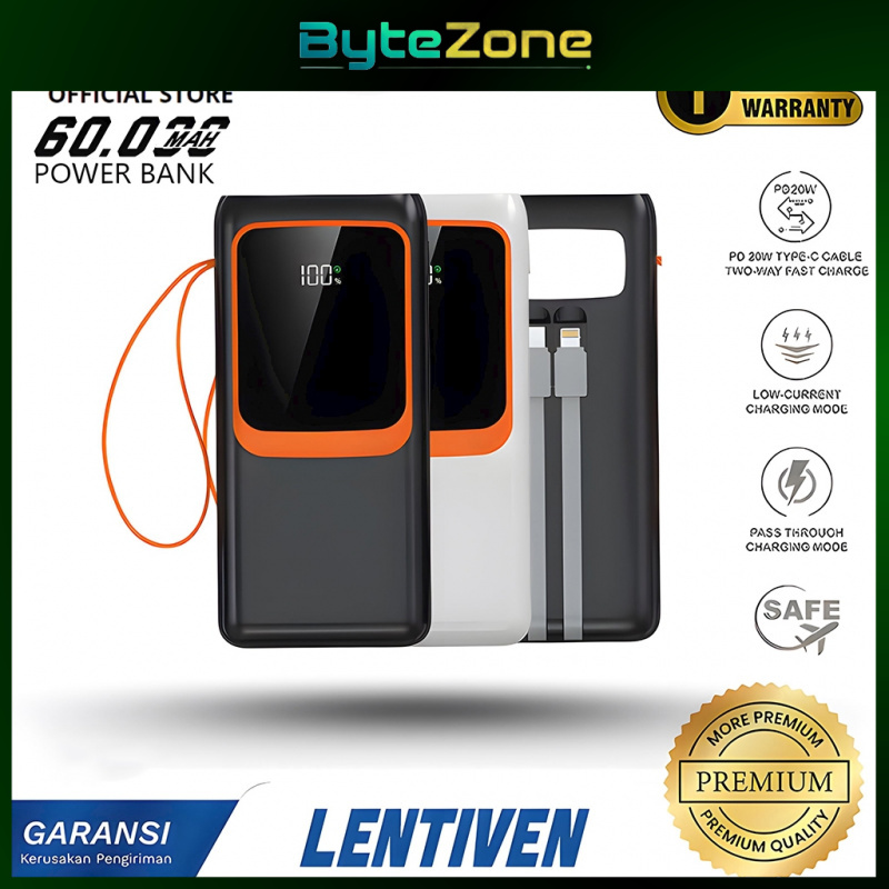 [Mall] SALYS LENTIVEN Powerbank 60000mAh, Fast Charging dengan Dual Kabel Data Y20✨