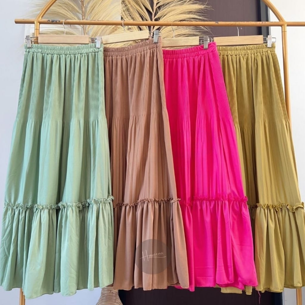Rok Plisket Susun Maiza Skirt Ruffle Wanita Anti Nerawang Versi 2