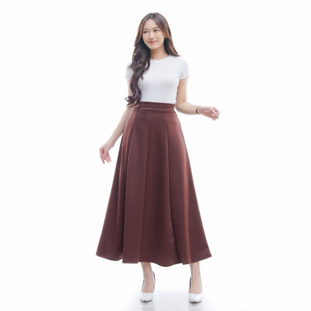 Rok Wanita Anti Kusut Polyester Rok Flare Wanita Rok Basic Polyester Korean Loose Maxi Skirt