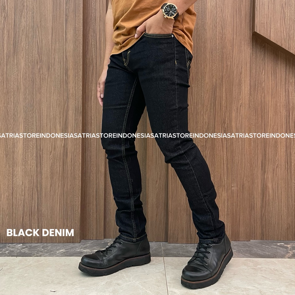 Satria Store, Celana Jeans Pria Slim Fit Celana Panjang Pria Stretch Dark Retro Kekinian