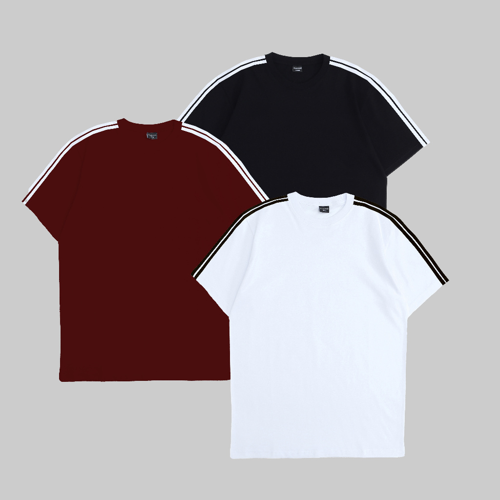 Kaos Lengan Pendek Two Line Stripe Cotton Combed 24S Polos Unisex