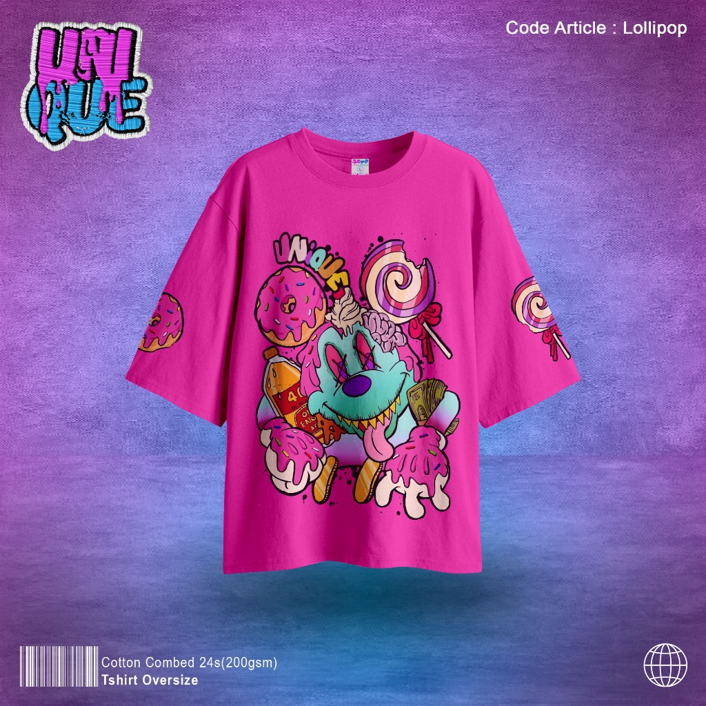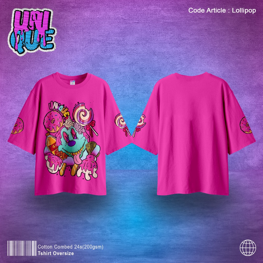 Kaos Oversize Lollipop Basic Combed 24S Lembut Pria & Wanita Sablon Kaos Unisex