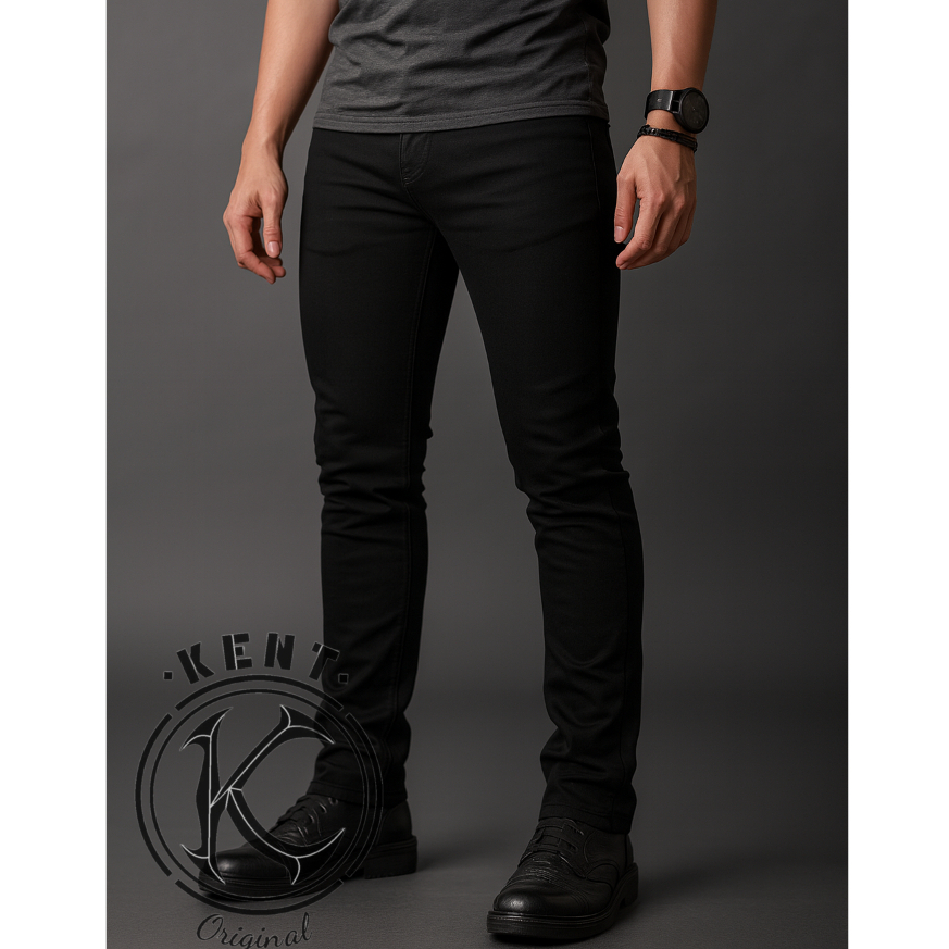 Kent Original Celana Jeans Panjang Pria Slimfit Hitam Pekat Bahan Naomi Premium
