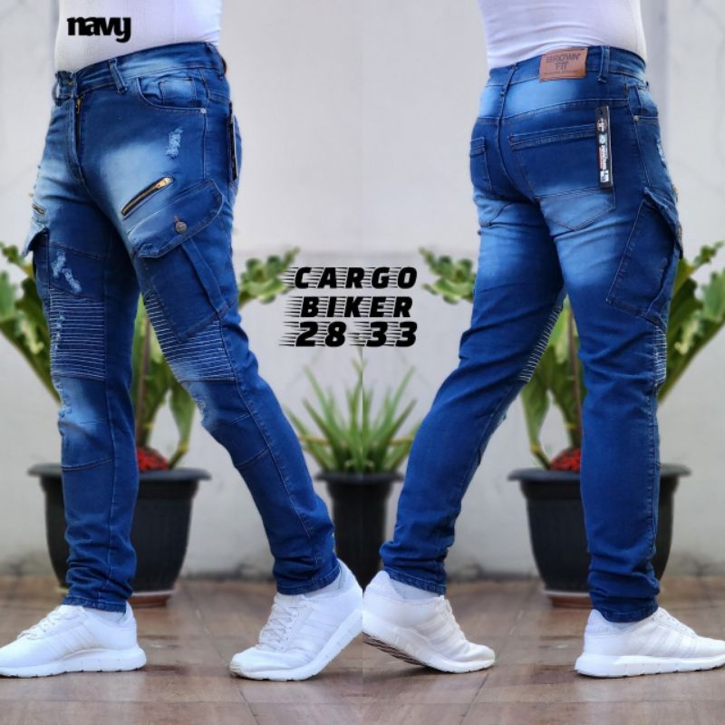 Celana Pria Jeans Sobek Puring Bikers Boriel Celana Biker