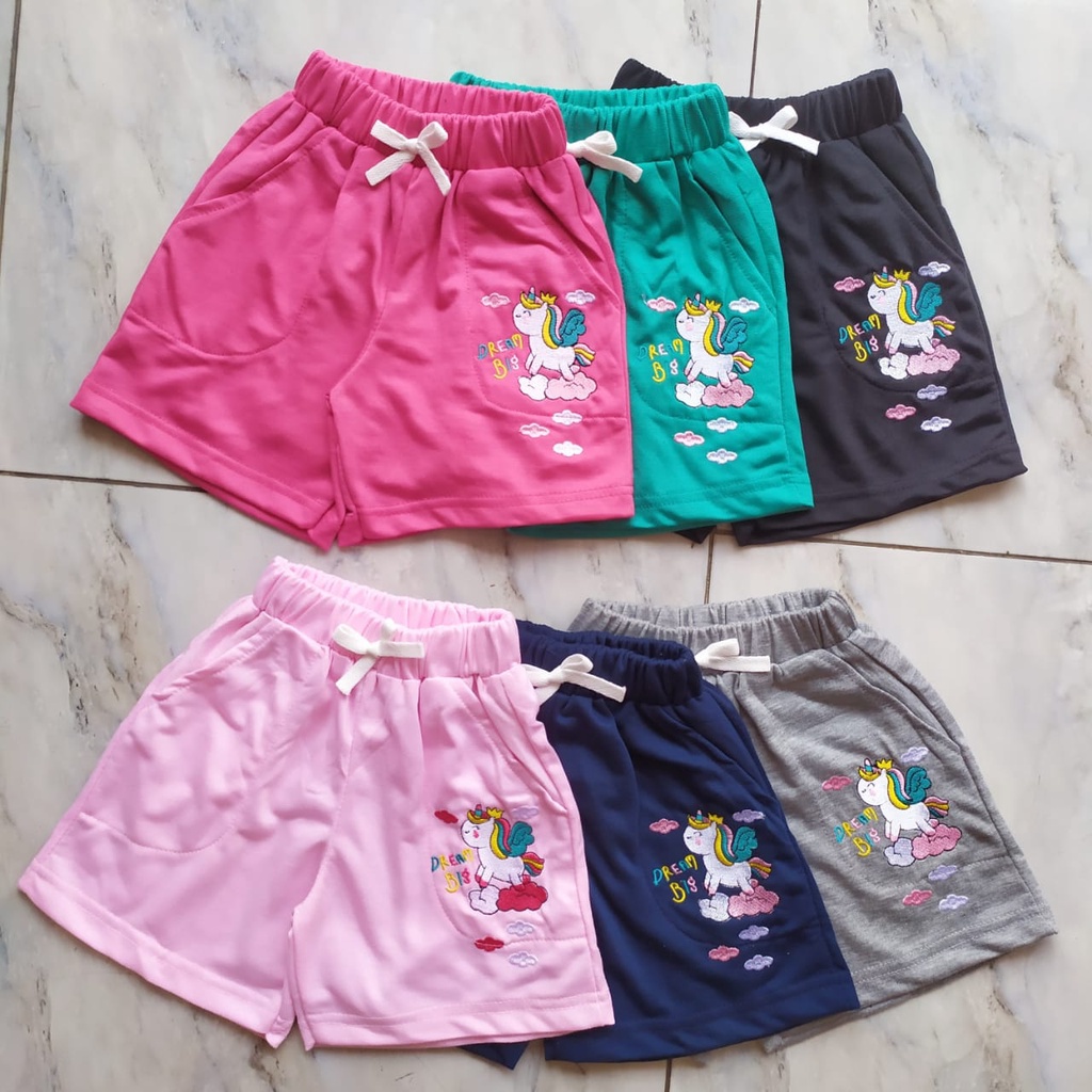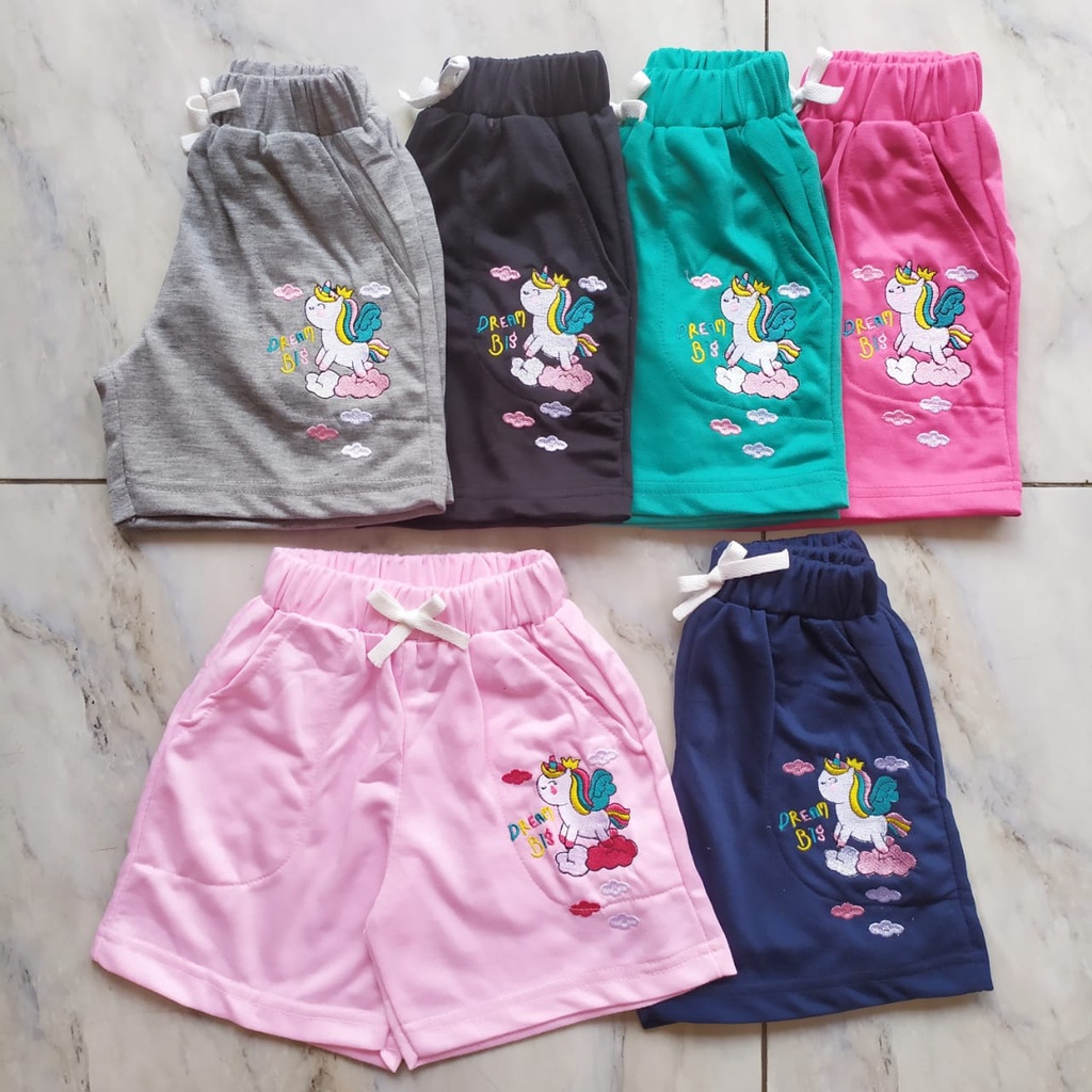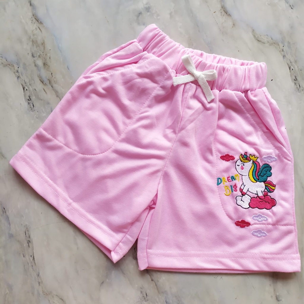 Celana Pendek Anak Perempuan Bordir Little Pony Unicorn 2-8 Tahun