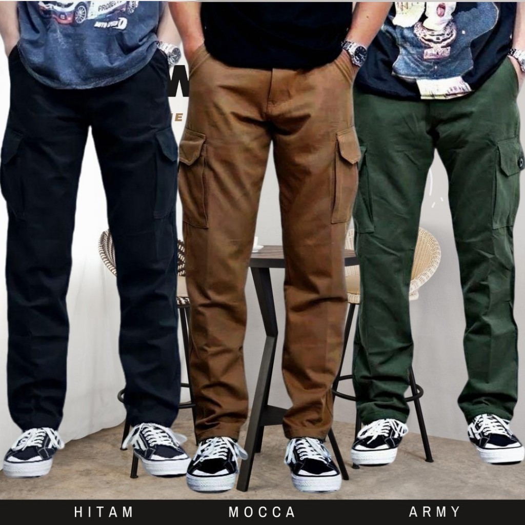 PROMO PAKET SUPER HEMAT 90 RIBU DAPAT 3 PCS CELANA PANJANG CARGO PINGGANG RIB KARET