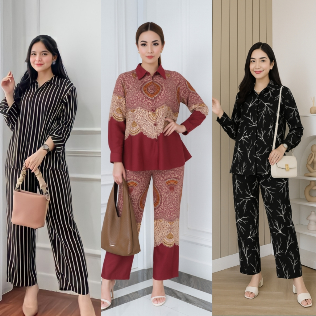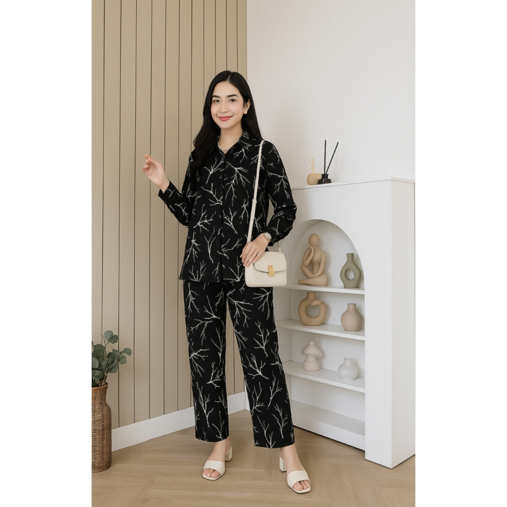PIYAMA ONE SET WANITA KEKINIAN RAYON SETELAN WANITA PAKAIAN WANITA LENGAN PANJANG BAJU TIDUR