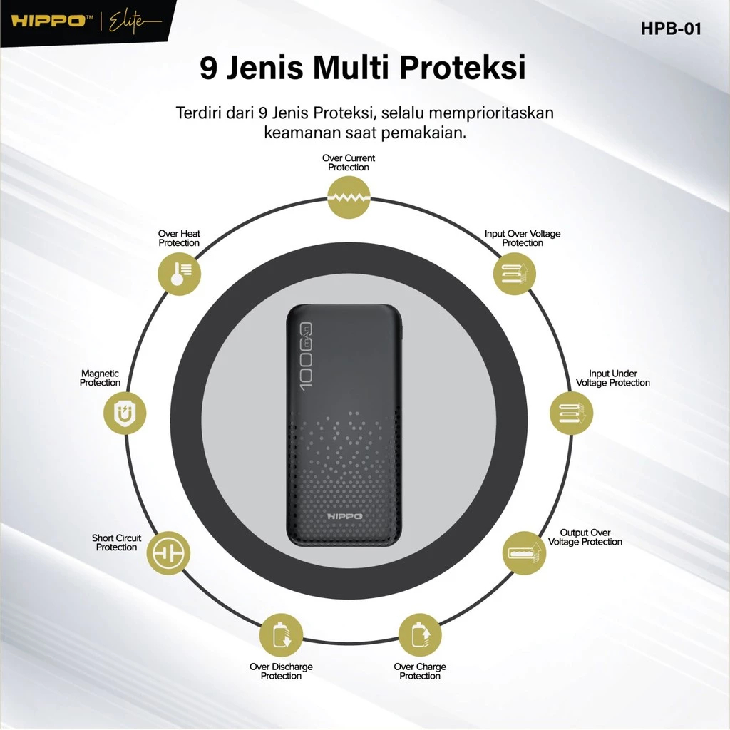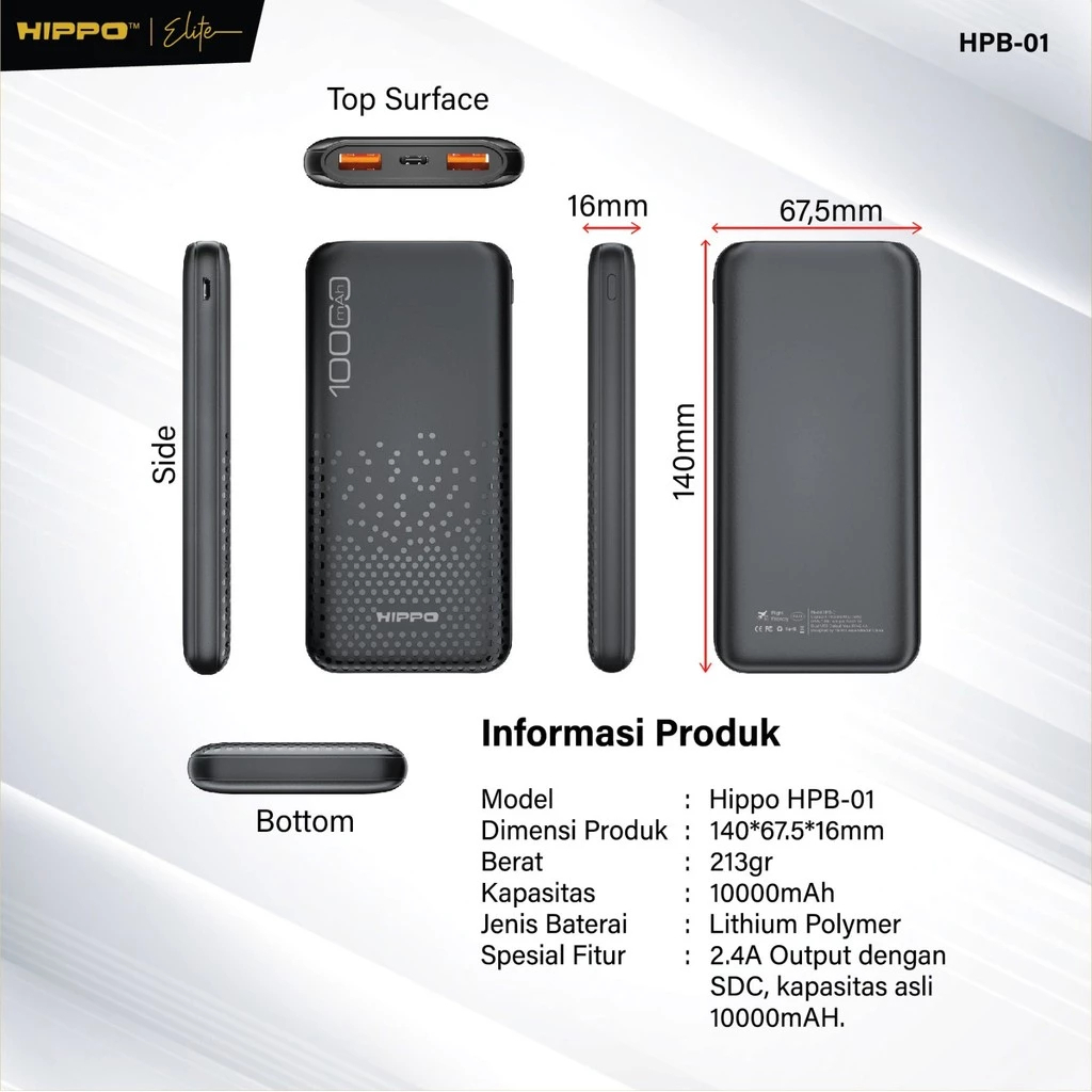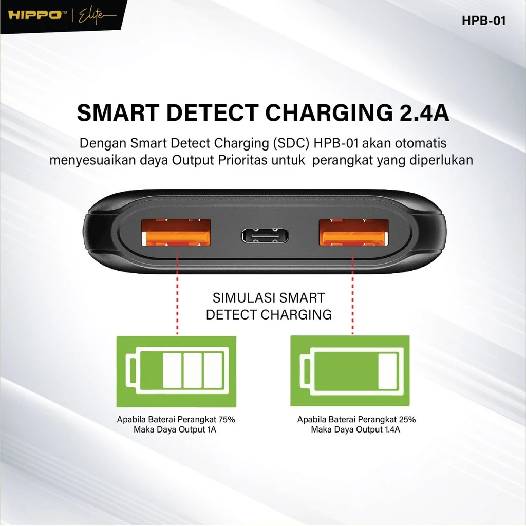 [Mall] Hippo HPB-01 Powerbank 10000mAh, Fast Charging 2.4A, Dual Output USB-A, Dual Input USB-C & Micro, Bergaransi✨