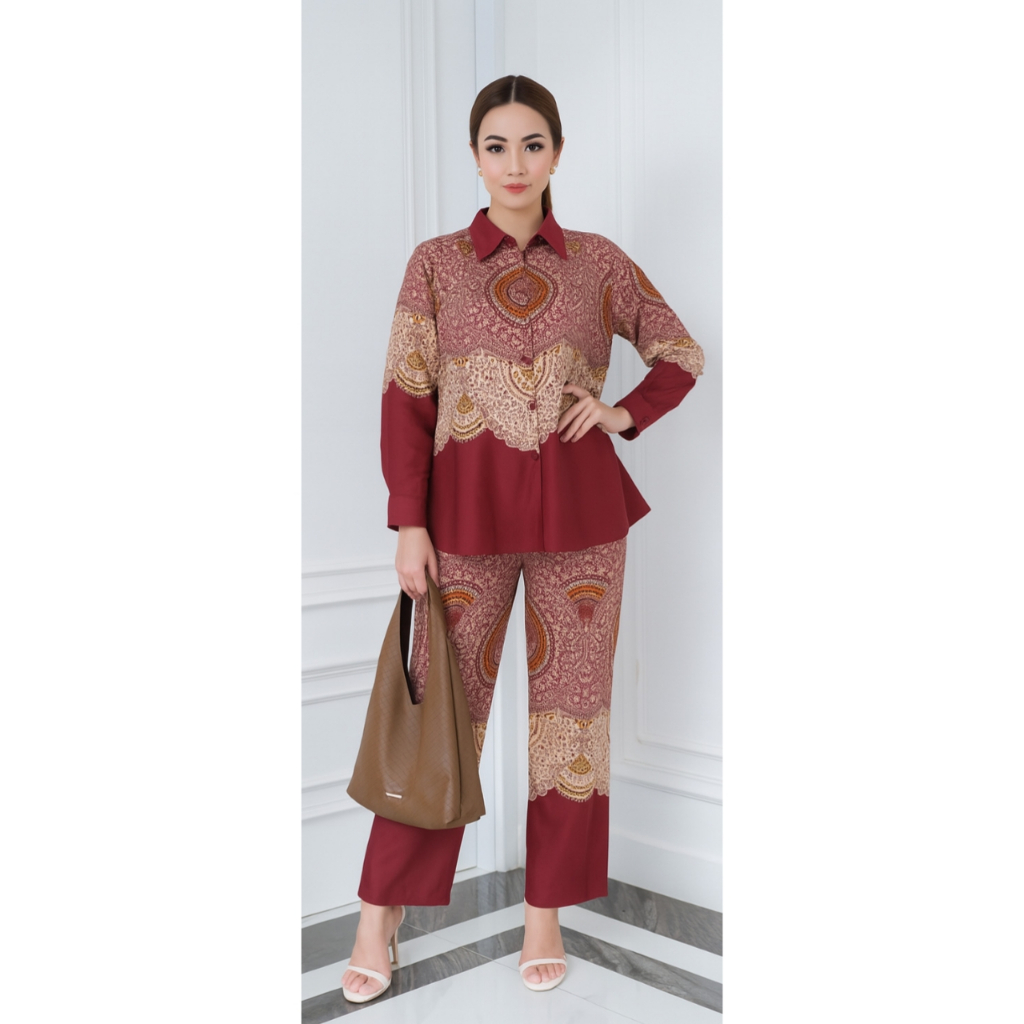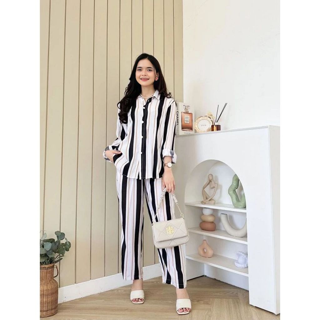PIYAMA ONE SET WANITA KEKINIAN RAYON SETELAN WANITA PAKAIAN WANITA LENGAN PANJANG BAJU TIDUR