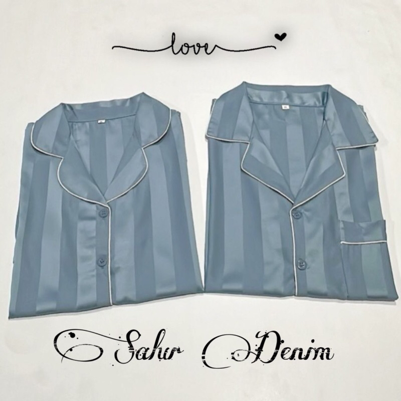 PAKET PIYAMA PP COUPLE GARIS SALUR KOTAK SATIN SUTRA WANITA DAN PRIA PANJANG