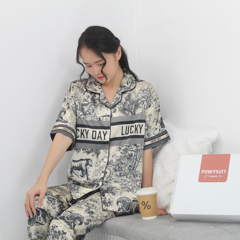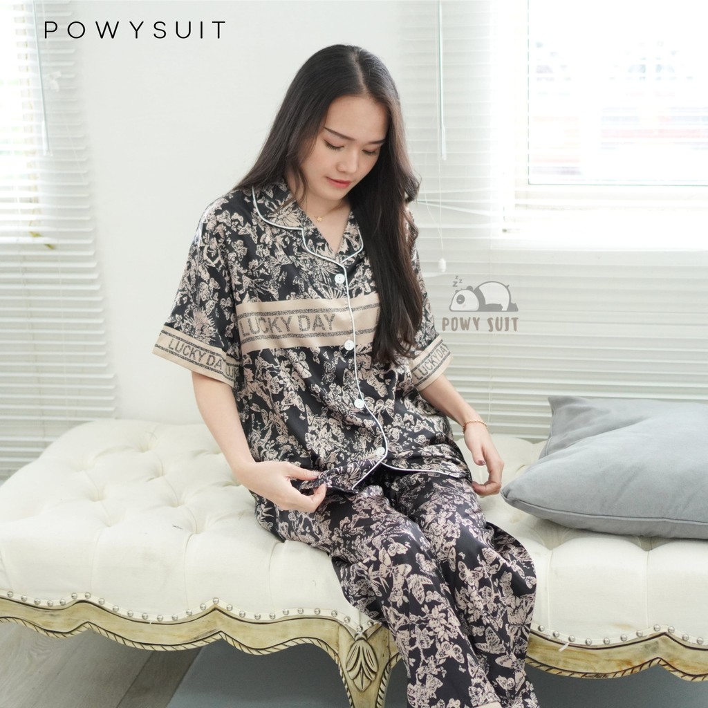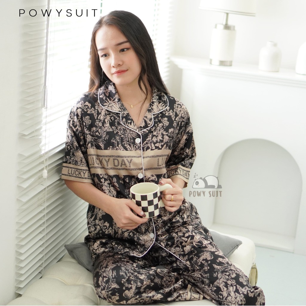 ST41 LUCKY DAY PIYAMA SATIN POWYSUIT BAJU TIDUR WANITA SETELAN LENGAN PENDEK CELANA PANJANG LEMBUT