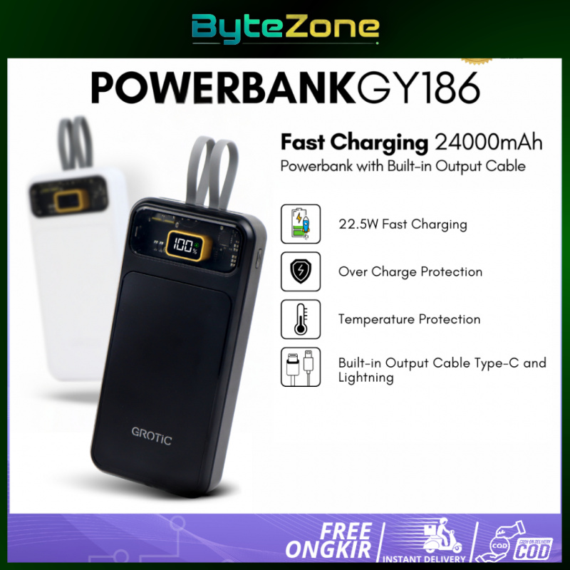 [Mall] GROTIC Powerbank 24000mAh, Fast Charging, Dual Port Type-C & Lightning GY186✨