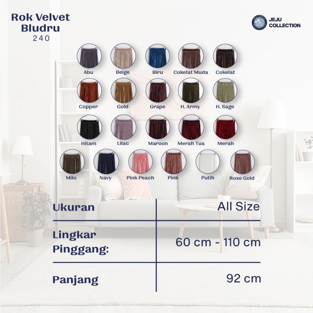 Rok Velvet Bludru Plisket Polos Shiny Premium Import 22 Warna 240