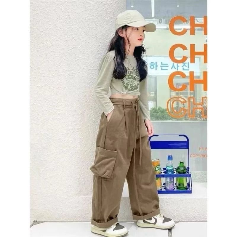 Celana Panjang Anak Cargo Perempuan Korean Style Umur 7-12Th