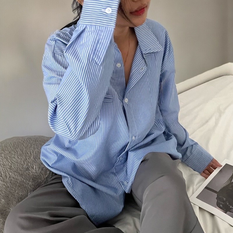 Stripe Shirt - Kemeja Salur Wanita - Korean Stripe Katun
