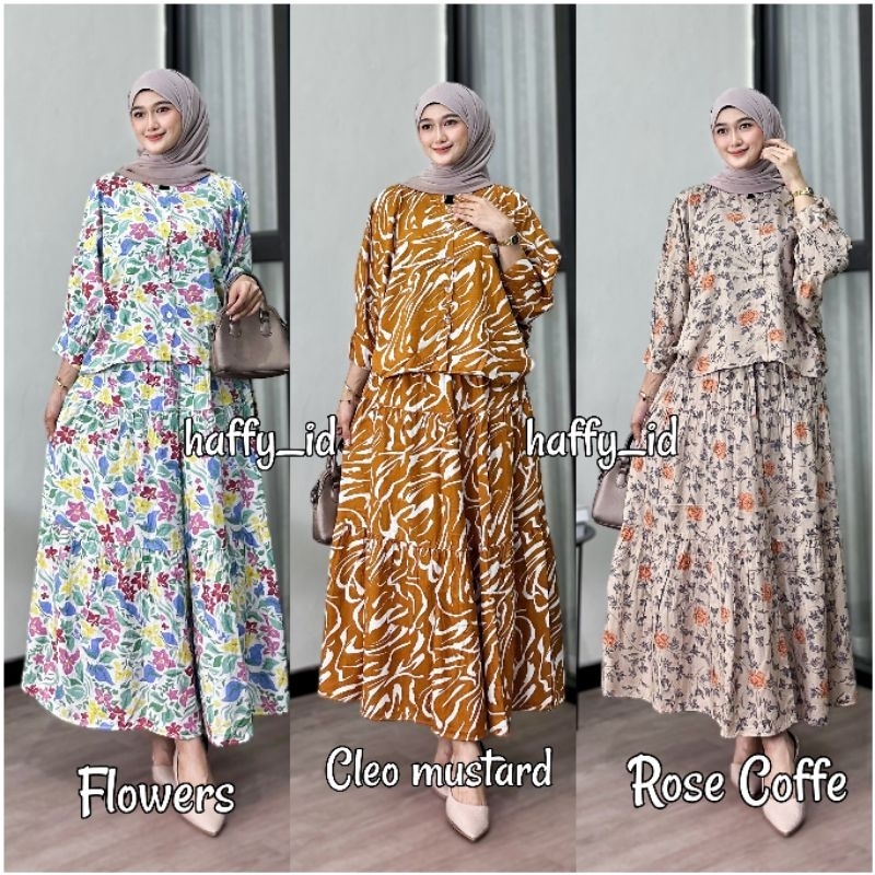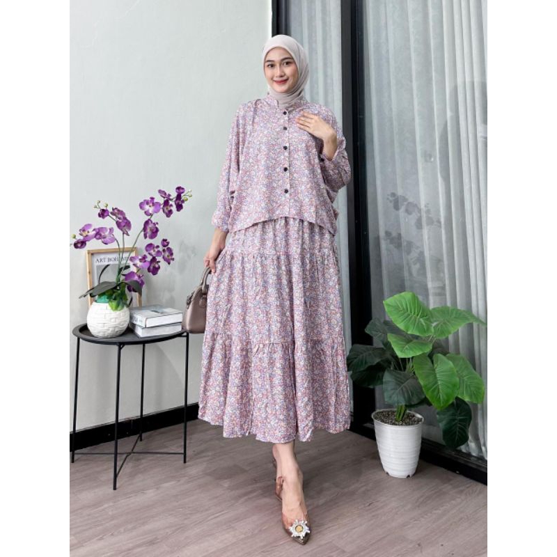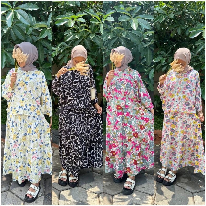 Set Rok Rayon Terbaru One Set Rok Wanita Kekinian Atasan Batwing Set