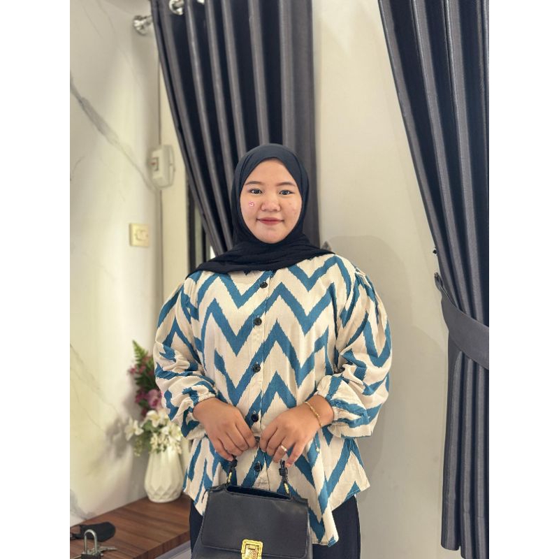 Blouse Oversize Lengan Balon Katun Rayon Motif Terbaru