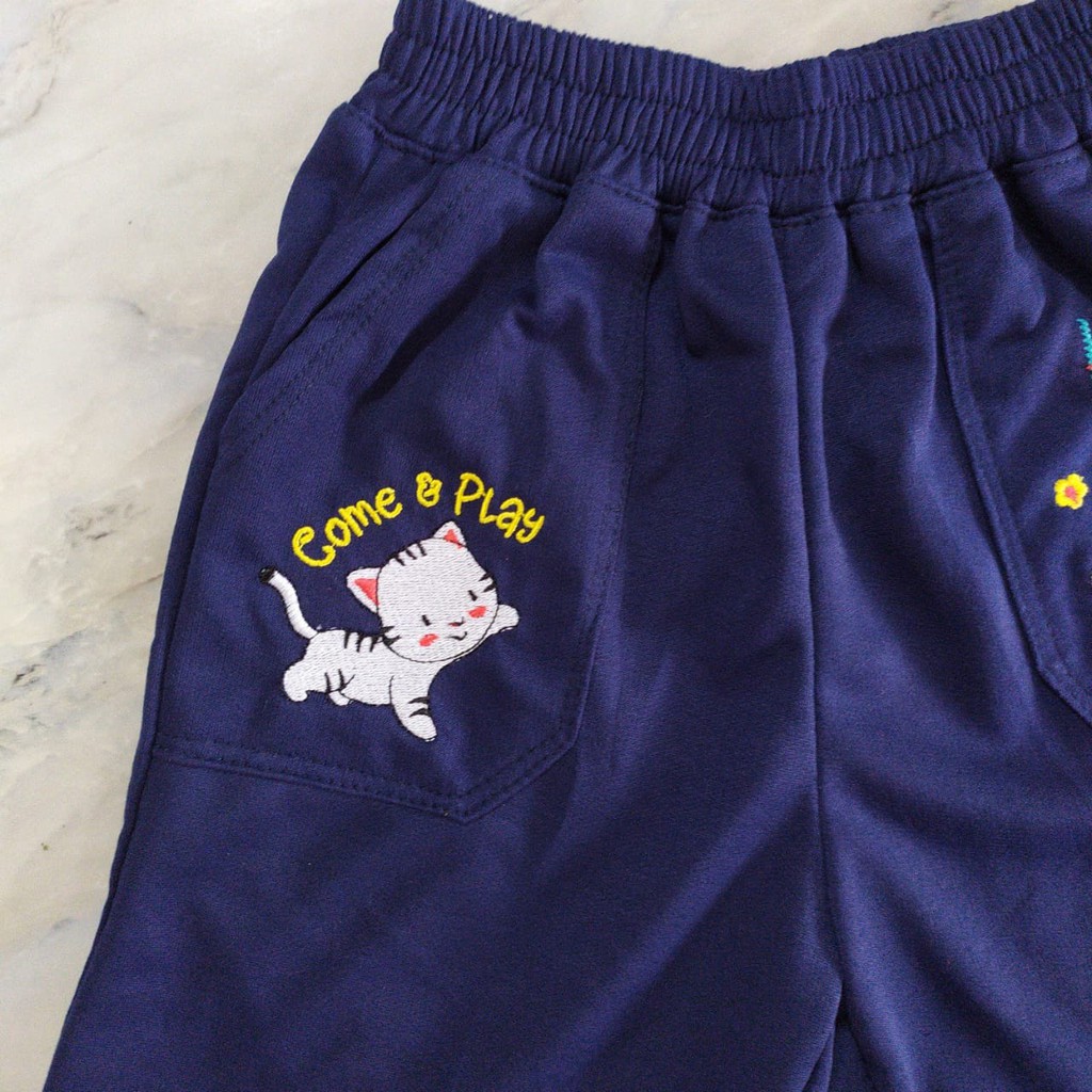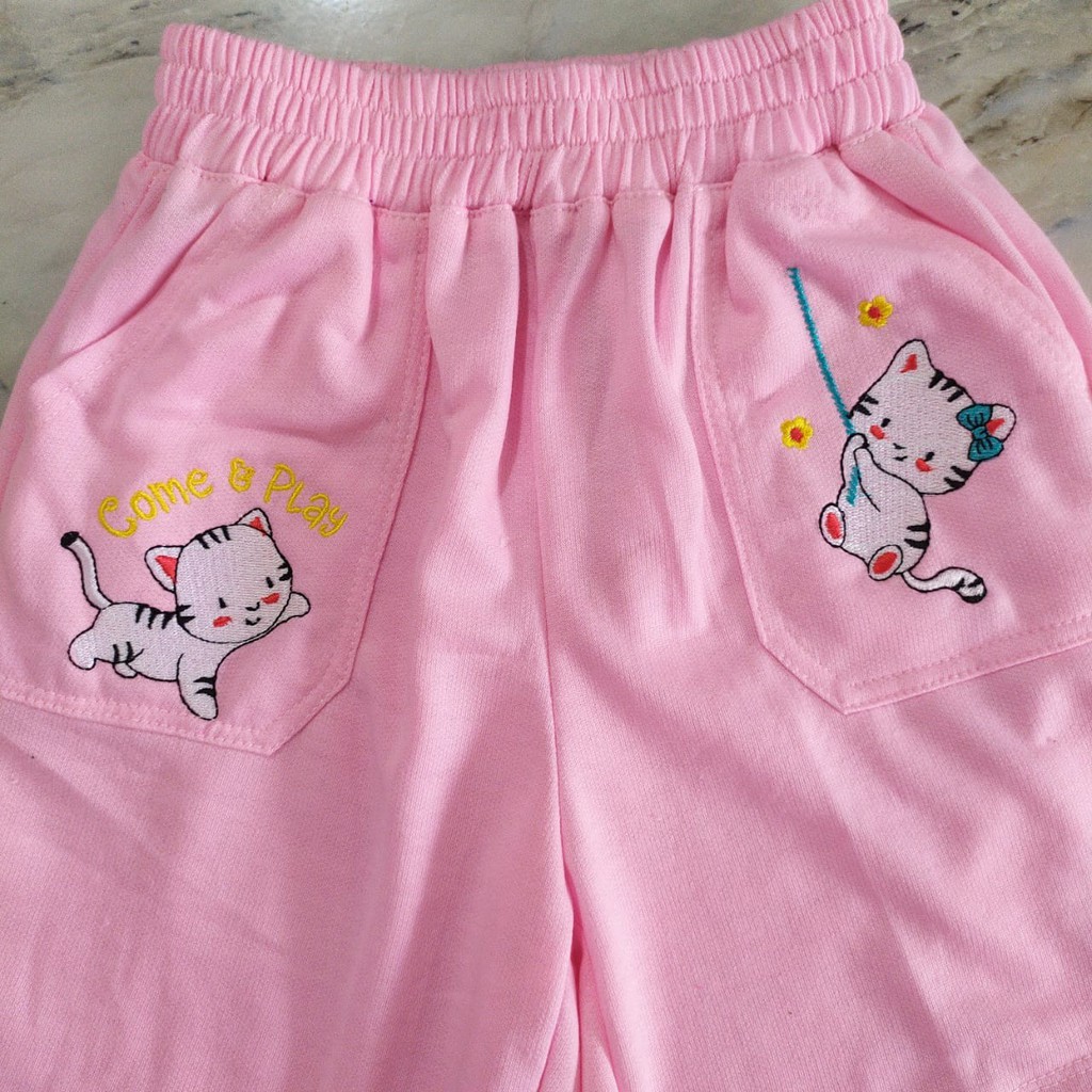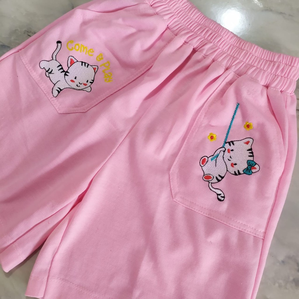 Celana Pendek Anak Perempuan Bordir Cat Kucing Umur 2-10Thn
