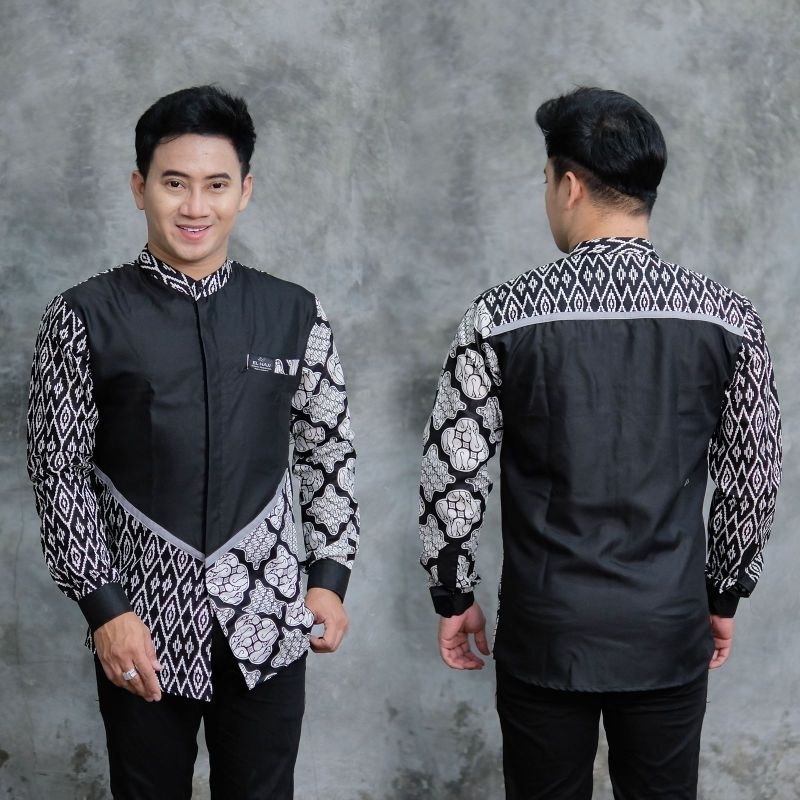 Baju Koko Terbaru Special Ramadhan 2026 Baju Koko Pria Lengan Panjang Kombinasi Batik Parangkusumo Toyobo Premium