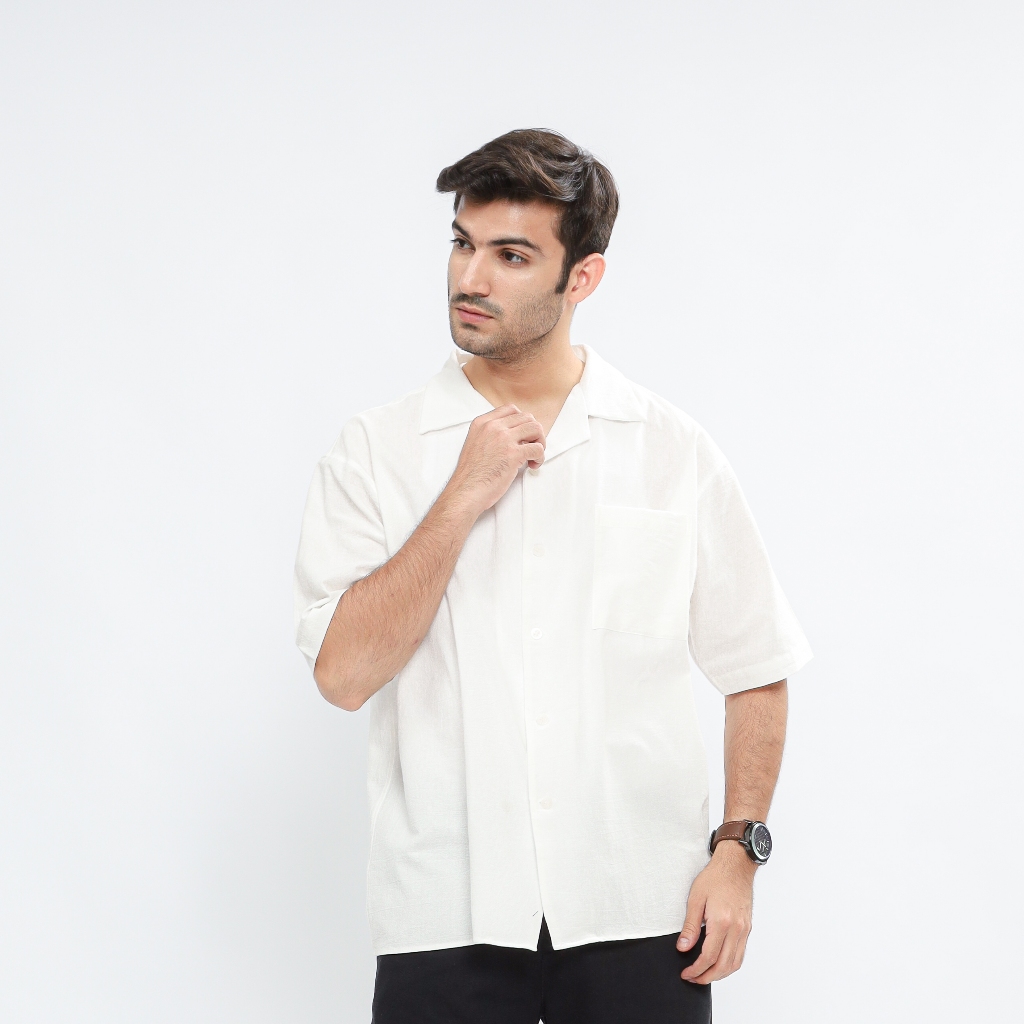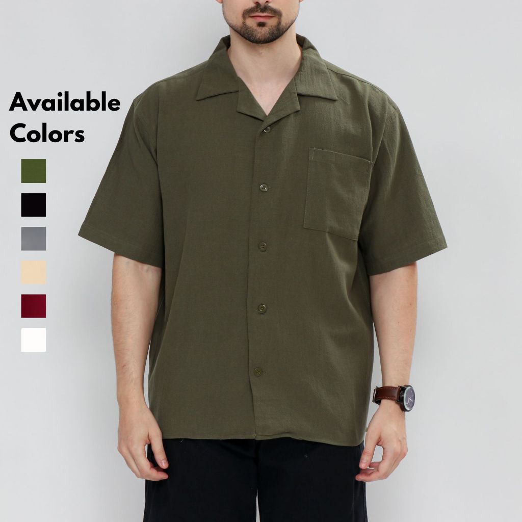 Kemeja Cuban Bowling Oversize Linen Texture Premium Adem Lembut