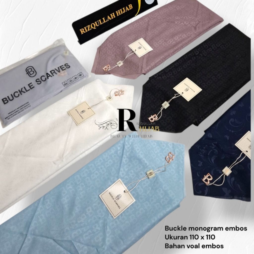 Hijab Segiempat Buckle Emboss Logo B Swarovski Dengan Pouch 110Cm X 110Cm