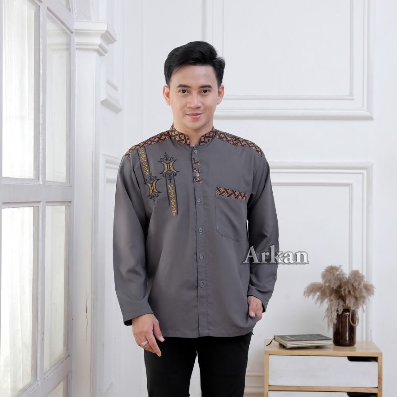 Baju Kemeja Koko Pria Dewasa Lengan Panjang Koko Bordil Kombinasi Batik M L Xl Xxl
