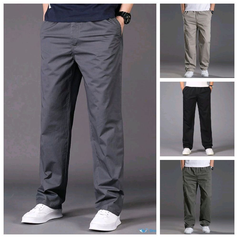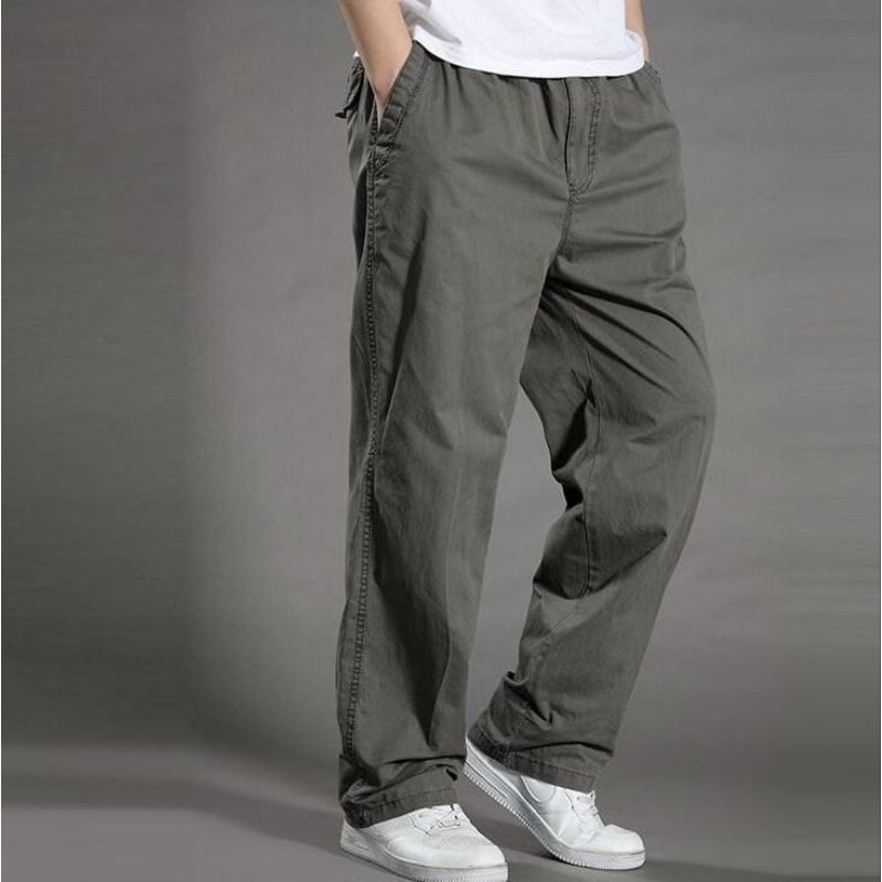 Celana Skena Celana Panjang Pria Dewasa 100Cm Korean Style Katun Twill Melar Pinggang Karet