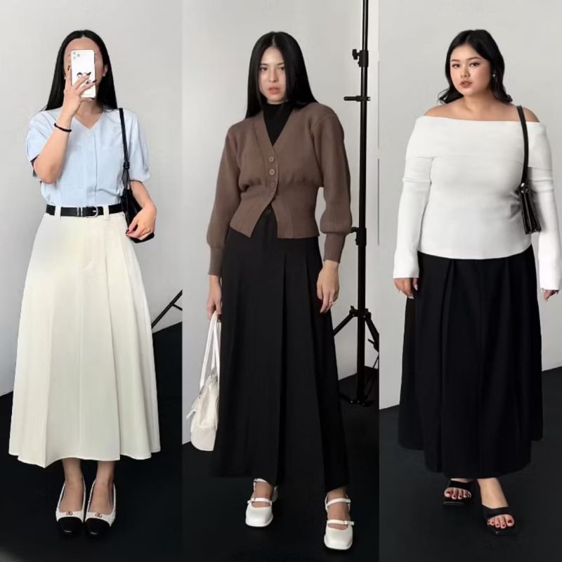 Rok Panjang Maxi Wanita Rok Flare Wanita Rok Korean Style Wanita Rok Rempel A Line