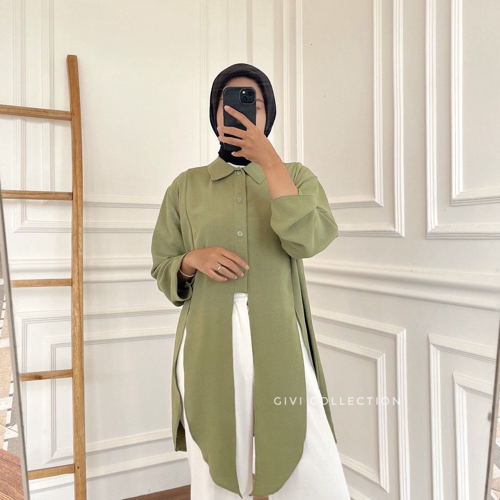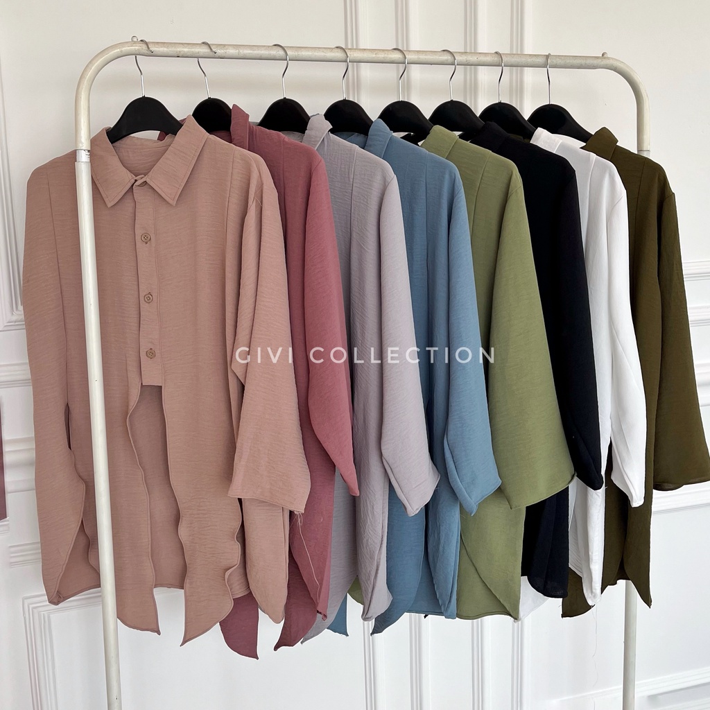 Pakaian Wanita Reyra Tunik Crinkle Kemeja Atasan Wanita Tunik Crinkle Oversize Dress