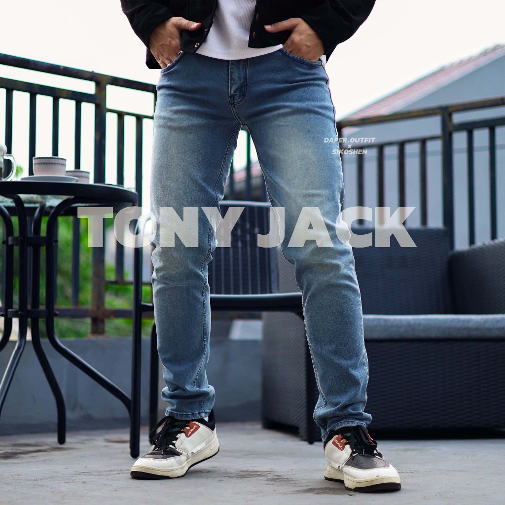 Celana Jeans Pria Original TONY JACK Soft Jeans Panjang Biru Tua Wash