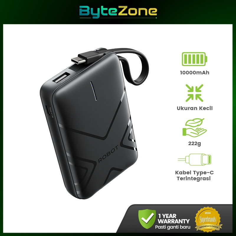[Mall] ROBOT RT17 Smart Powerbank Mini 10000mAh (37Wh) Fast Charging, Kabel USB to Type-C, Original + Garansi 1 T✨