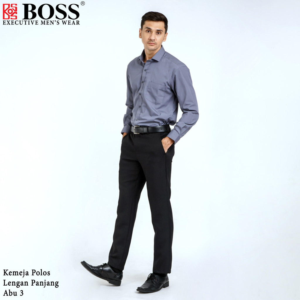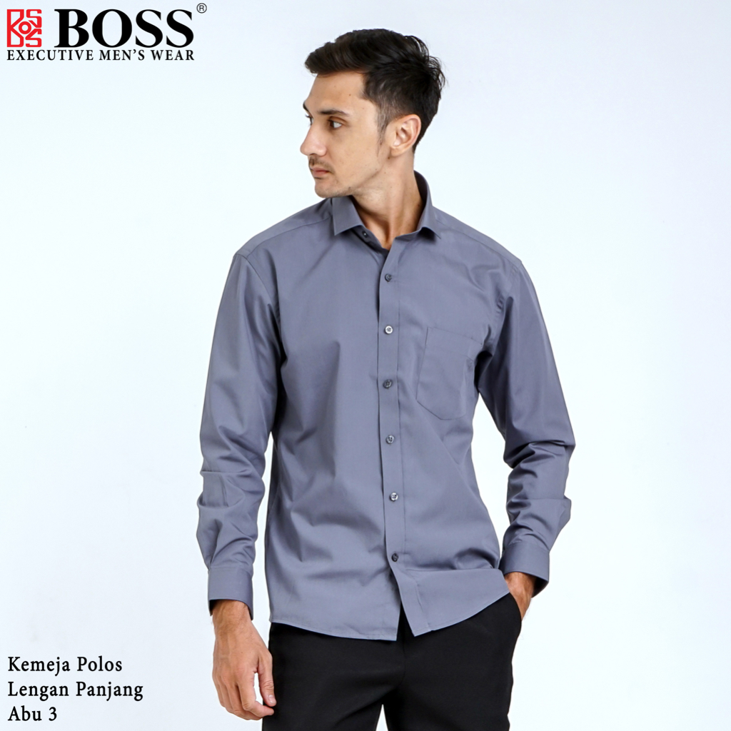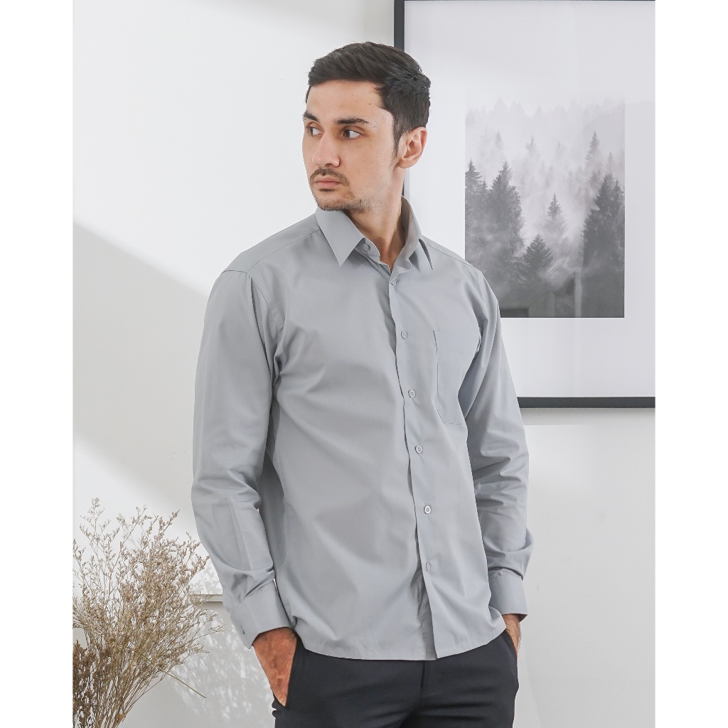 Kemeja Polos Pria Lengan Panjang Regular Fit Abu Pakaian Pria Dewasa