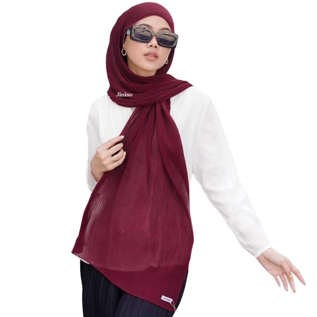 Jiniso Aura Hijab Pashmina Full Plisket Ceruty Babydoll