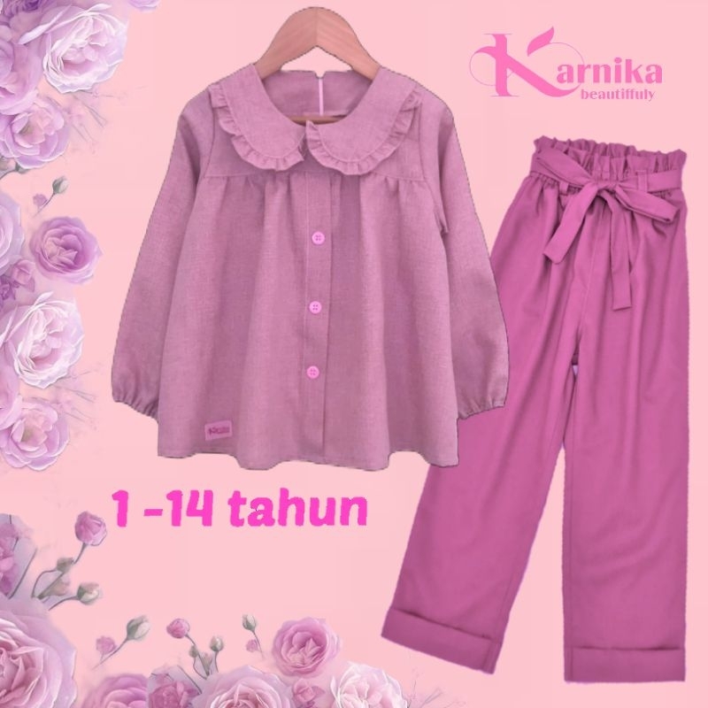 Baju Anak Perempuan Setelan 1-14 Tahun Set Atasan Blous Muslim Korean Oneset Celana Panjang