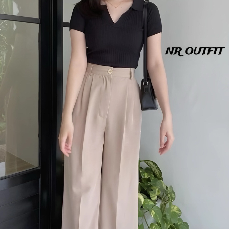 Loose Pants Trousers - Celana Kulot Anti Kusut Premium - Celana Kulot Wanita - Celana Wanita Highwaist - Celana Panjang Wanita - Celana Kerja Wanita