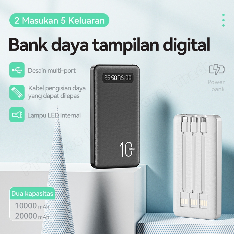 [Mall] BASIKE Powerbank Mini 20000mAh Fast Charging | Kabel Built-in Type-C, Micro USB & Lightning✨