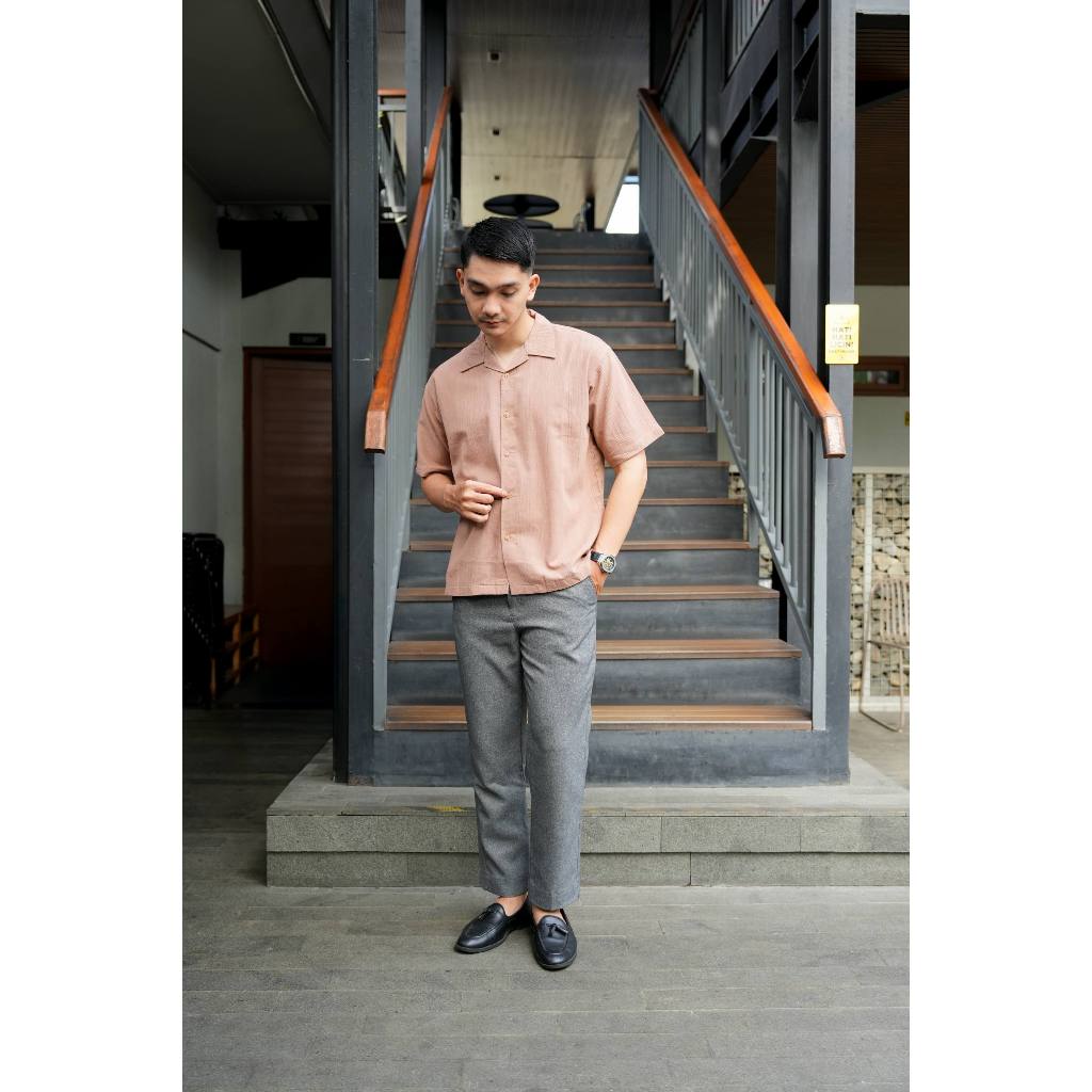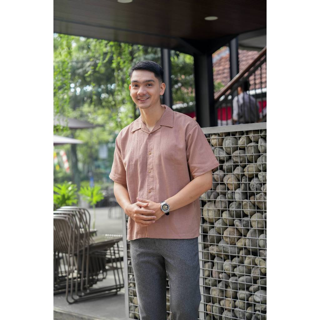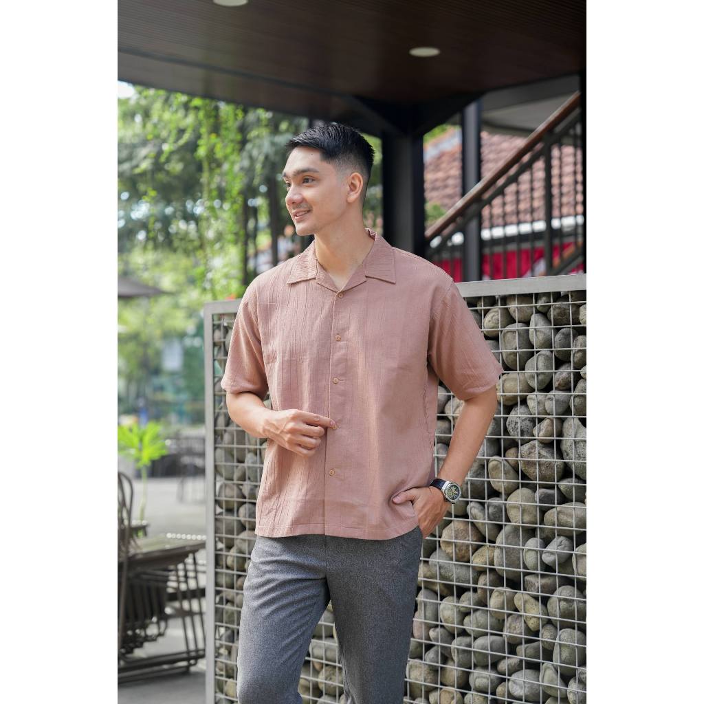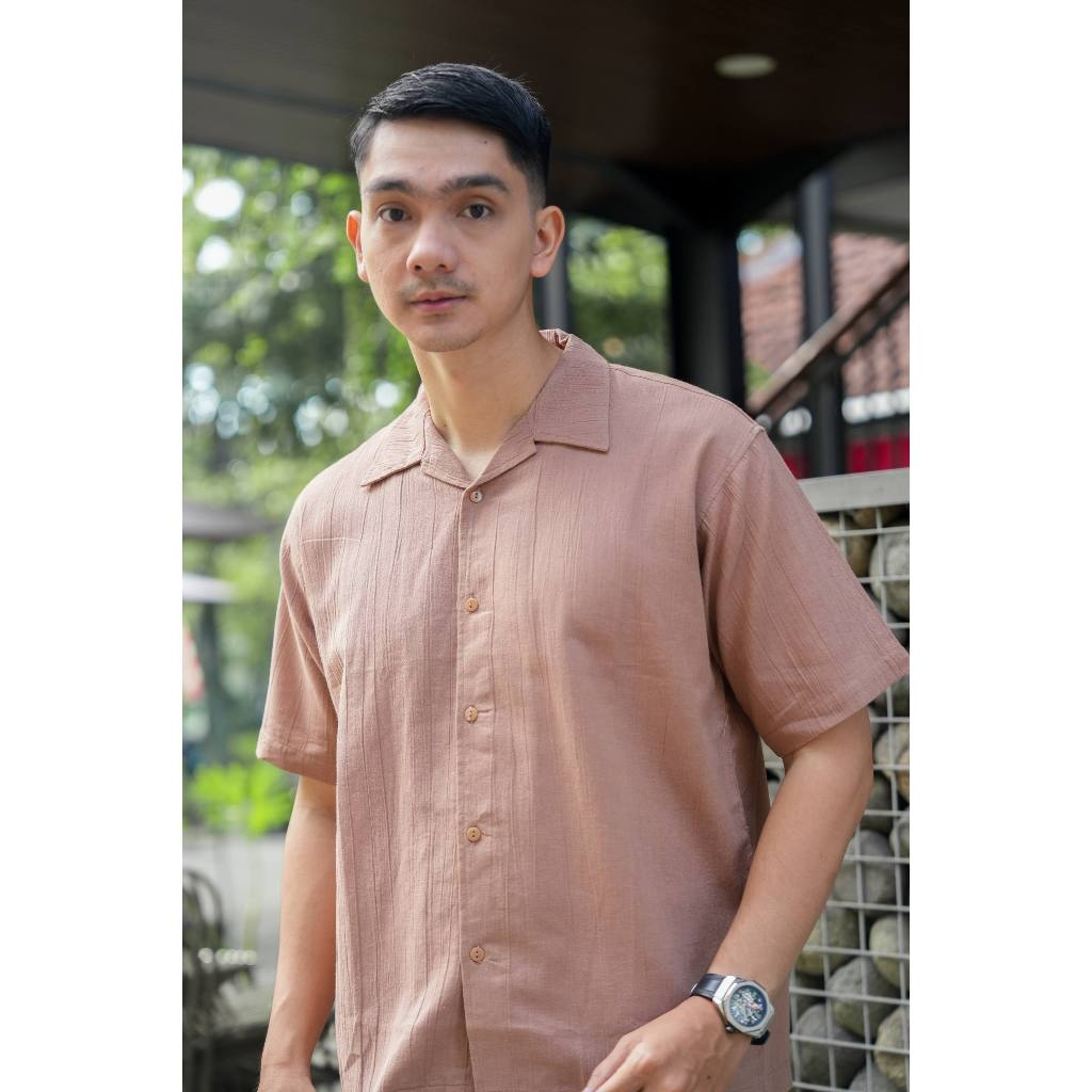 Kemeja Polos Linen Pria Lengan Pendek Bronze