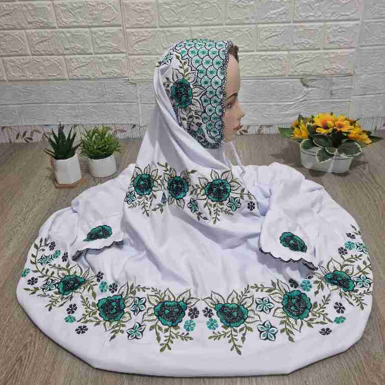 Mukena Wanita Terusan Putih Bordir Terbaru