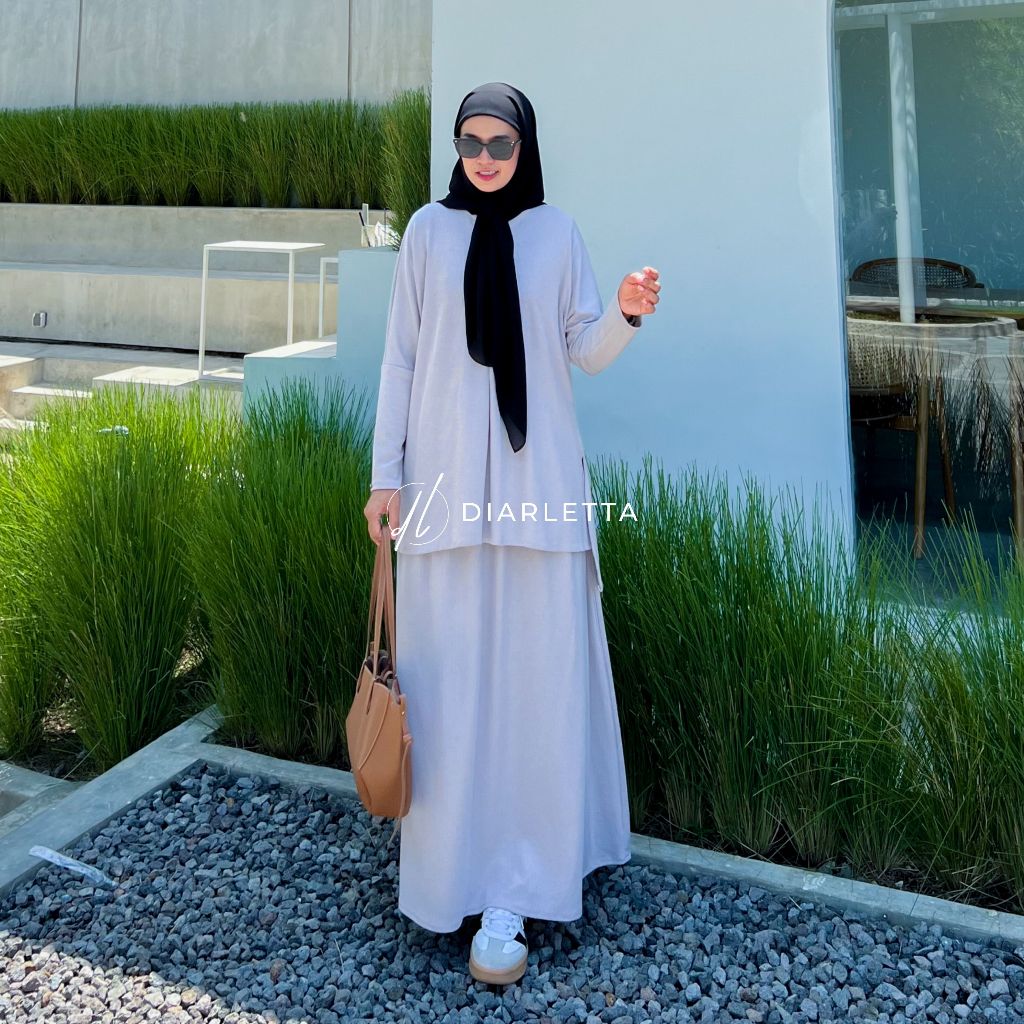 Motif Lea Set Rok Knit Caramel Busui Friendly Daily Set Batwing By Diarletta