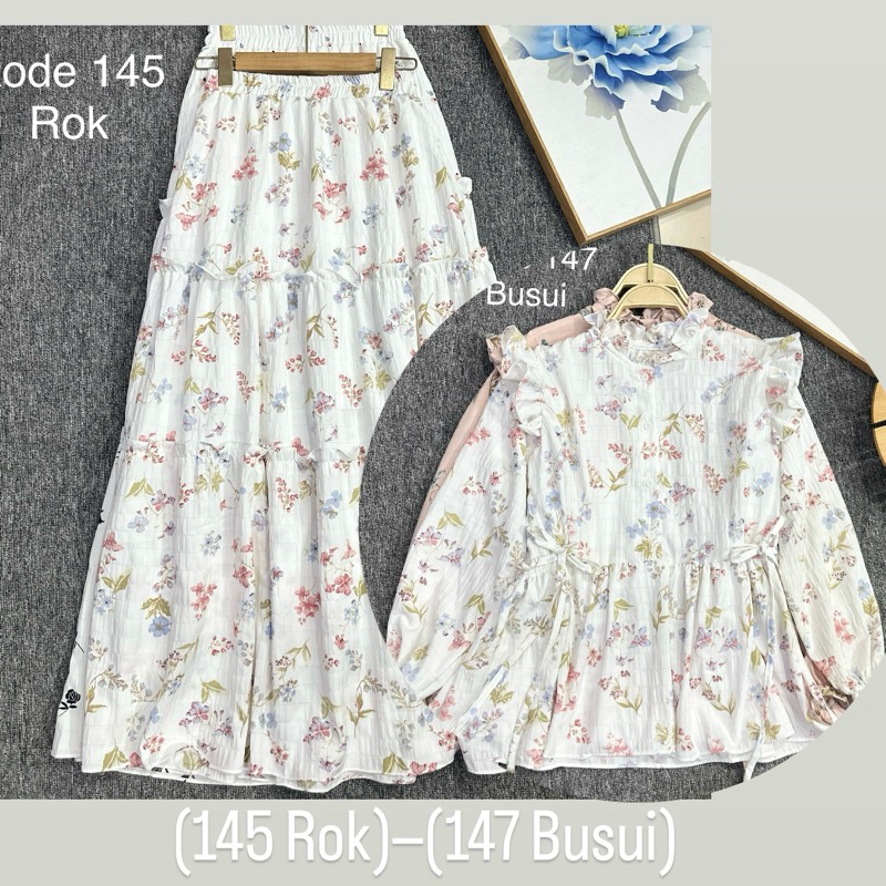 Oneset Cott Crinkle Blouse Dan Rok Stelan Wanita Busui Friendlykode 145