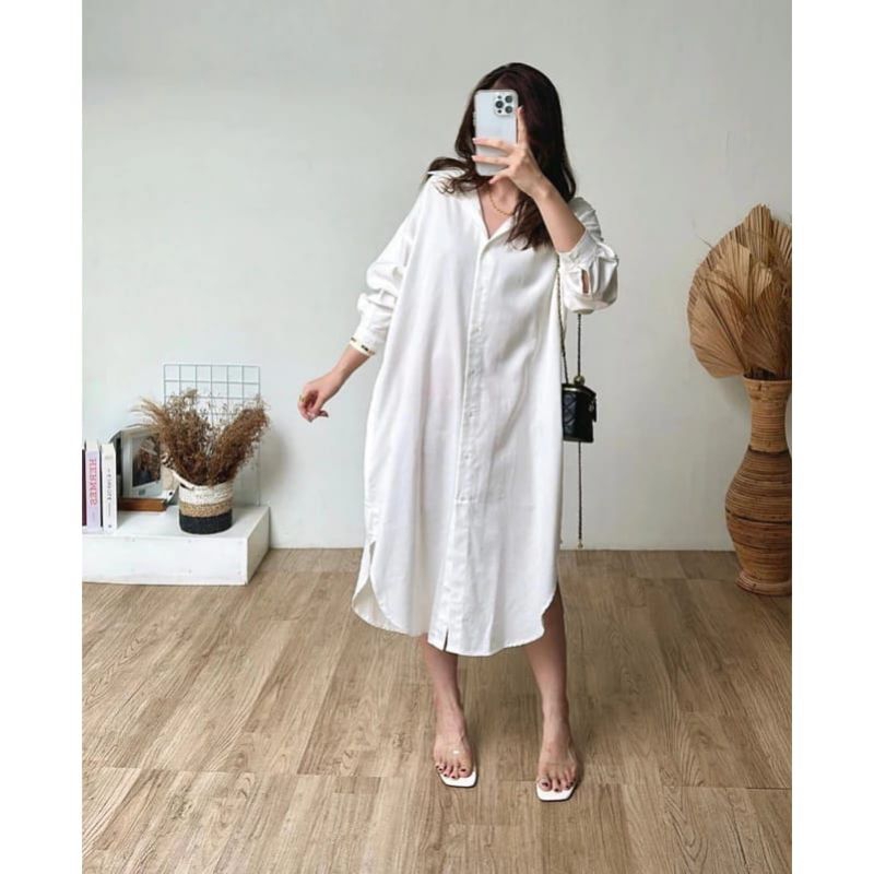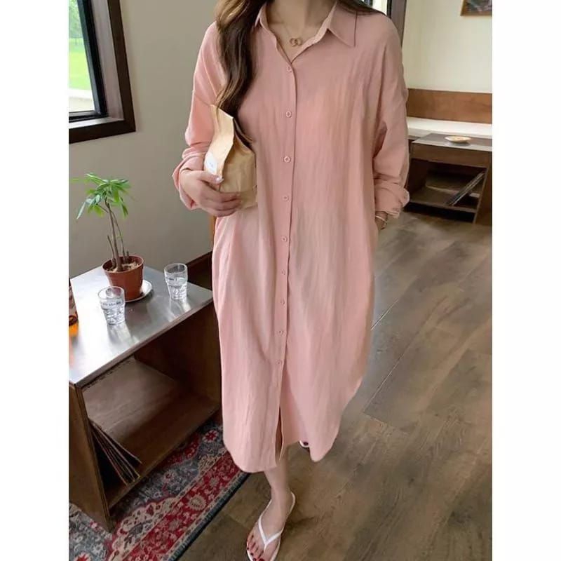 Oversize Long Dress - Kemeja Wanita Cotton Linen