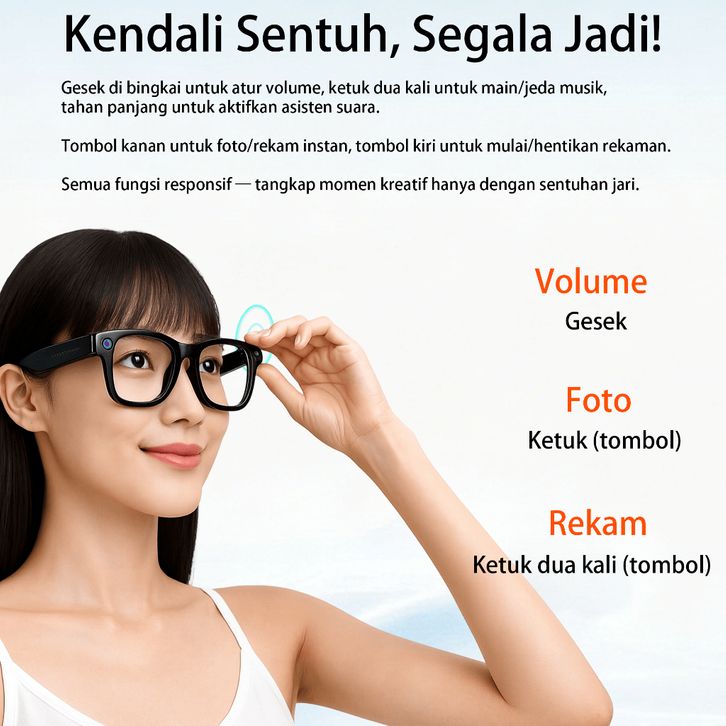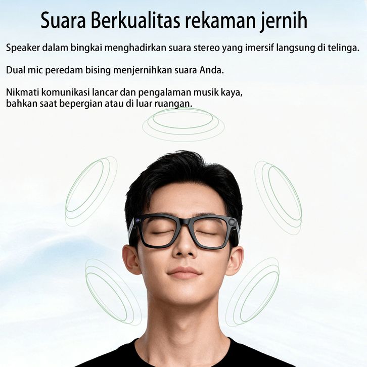 Kacamata Pintar AI ERVPES Terjemahan real-time Lensa HD 8MP, penyimpanan 32GB Fitur deteksi pemakaian Lensa filter