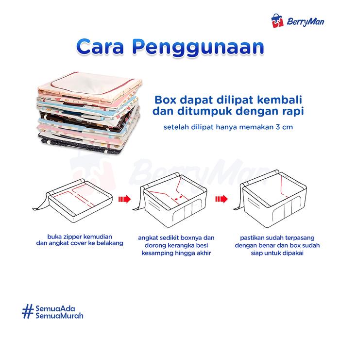 STORAGE BOX PAKAIAN LIPAT RTABLE KOTAK TEMPAT PENYIMPANAN KAIN OXFORD PRAKTIS & SERBAGUNA - MERAH LKADOT , 66 L