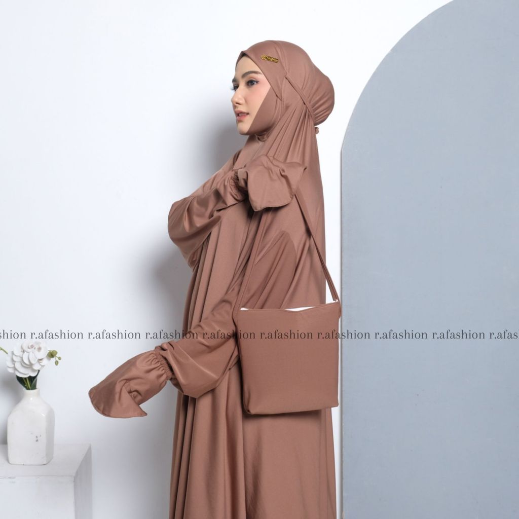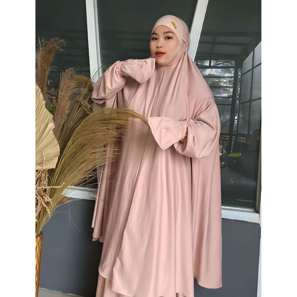 Mukena Dewasa Umroh Setelan Berlengan Atas Bawah Penutup Dagu Malasyia Jersey Premium